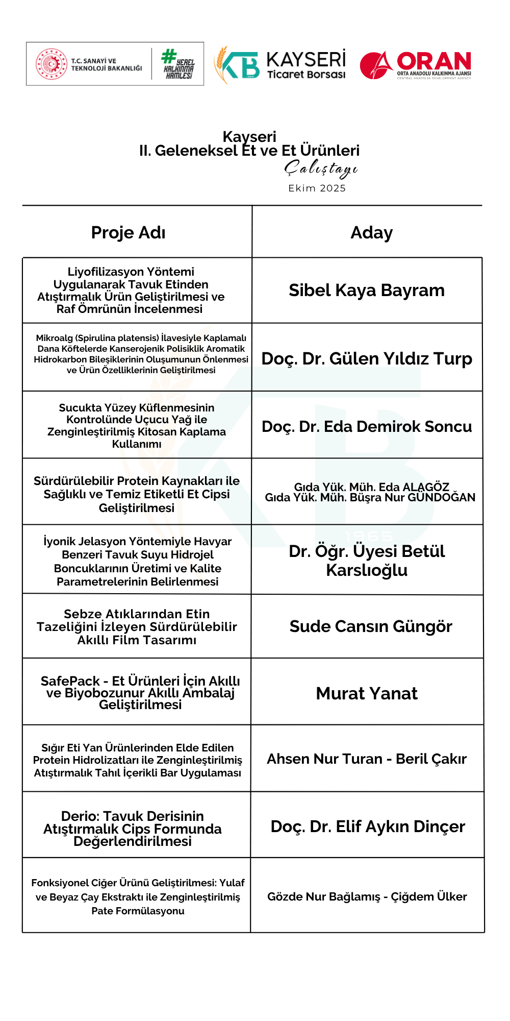 Kayseri II. Geleneksel Et ve Et Ürünleri Çalıştayı AR-GE Proje Pazarı Ön Değerlendirme Sonuçları