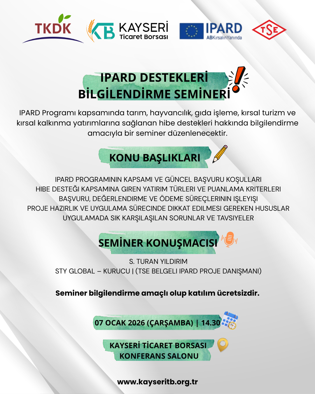 Kayseri Ticaret Borsası olarak, bölgesel ekonomiyi ve ticari faaliyetleri geliştirmek amacıyla düzenlediğimiz etkinliklerle, üyelerimize ve paydaşlarımıza geniş bir yelpazede destek sunuyoruz.