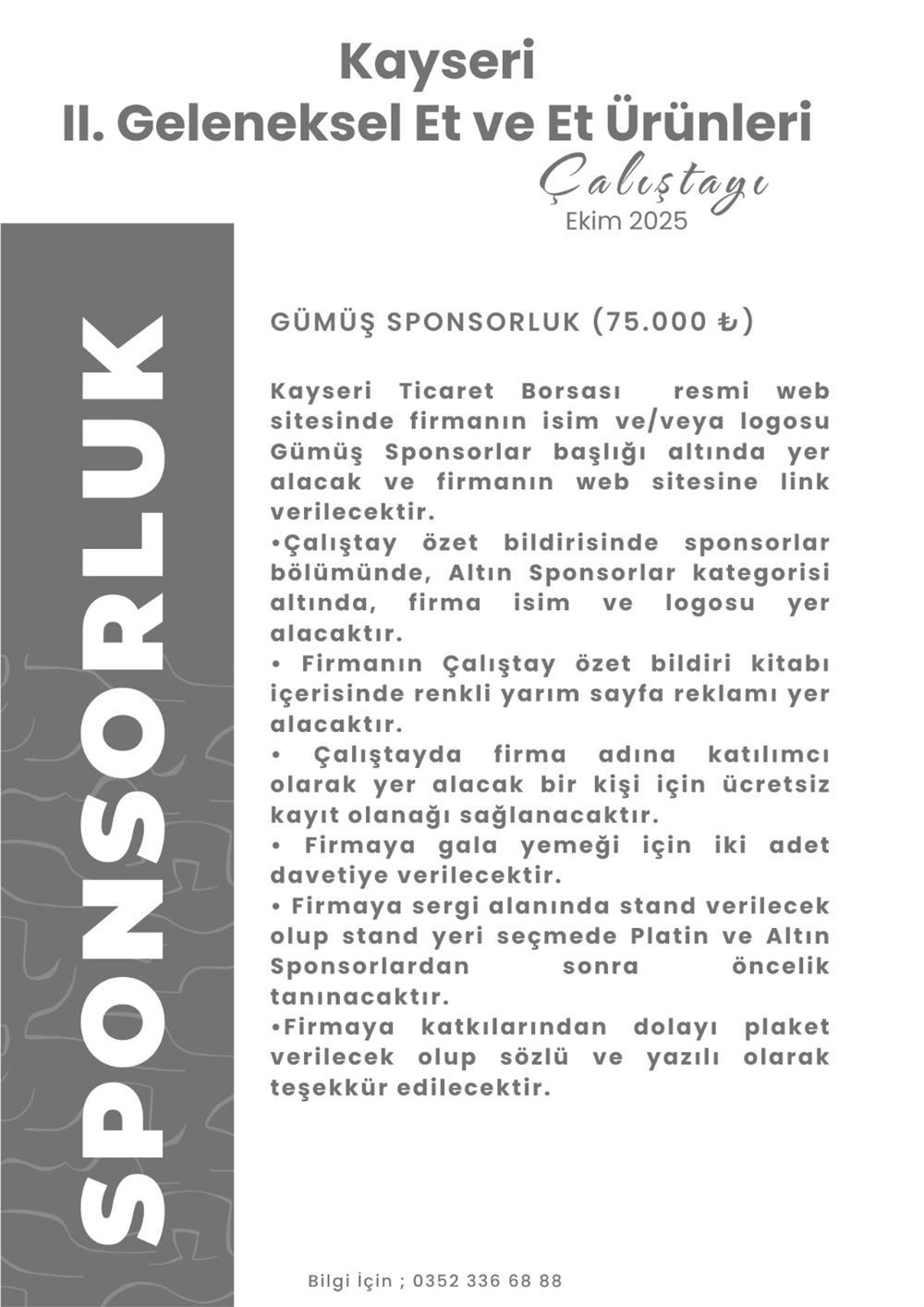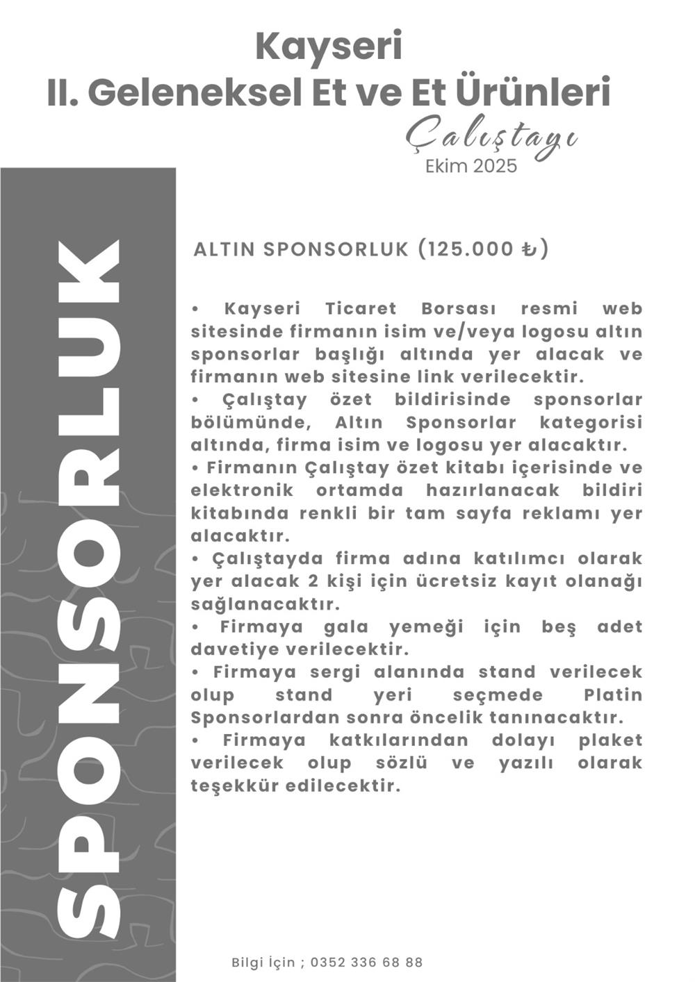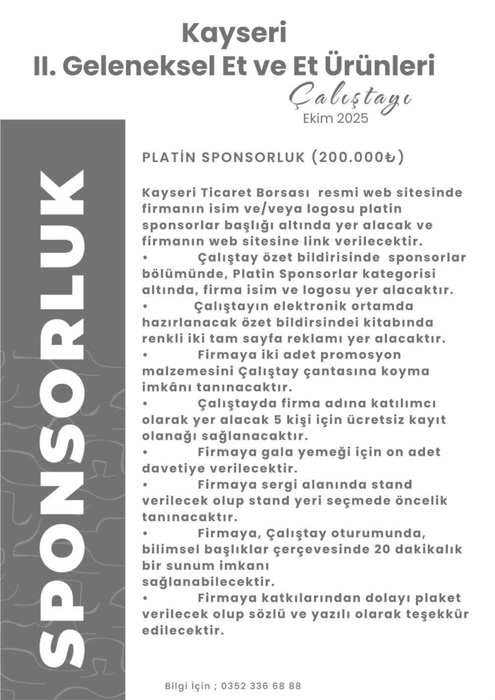 Kayseri II. Geleneksel Et ve Et Ürünleri Çalıştayı 2025 kapsamında sponsorluk kategorileri ve detaylı bilgiler, aşağıda sunulmuştur.