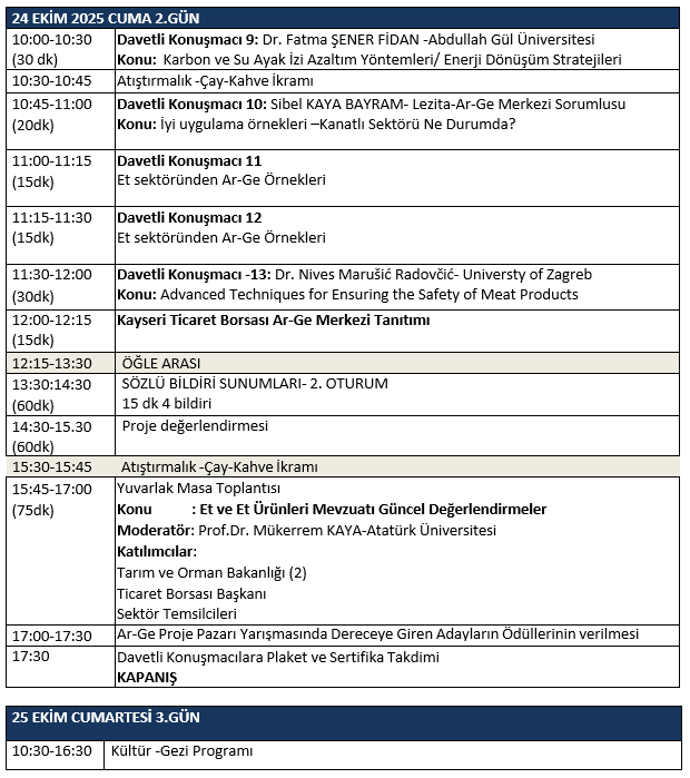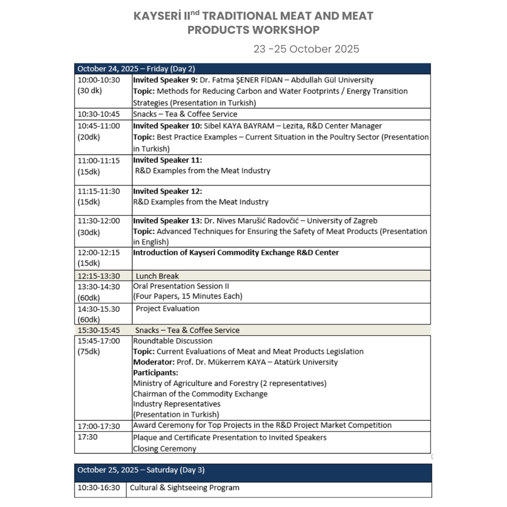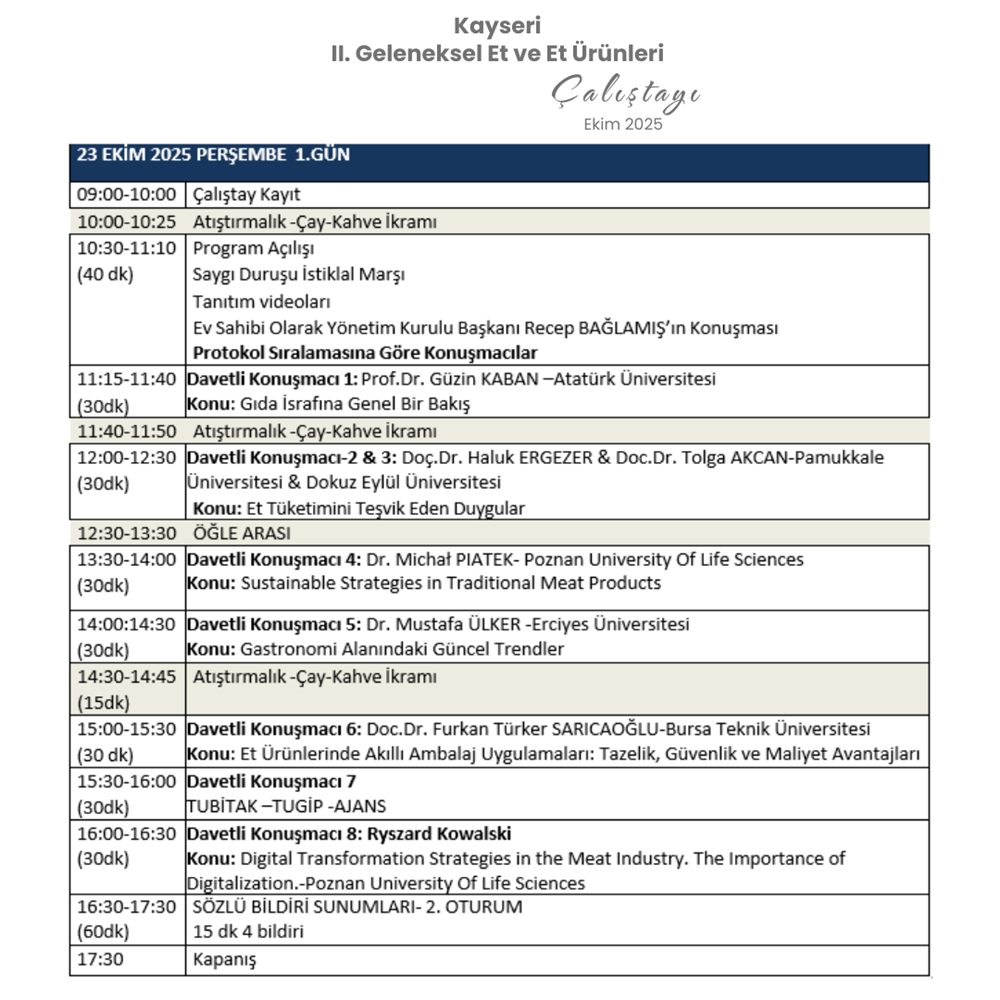 KTB Kayseri II. Geleneksel Et ve Et Ürünleri Çalıştay Taslak Programı