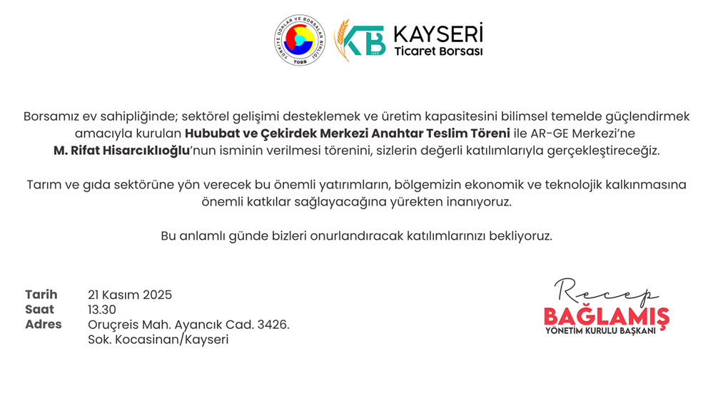 Borsamız ev sahipliğinde; sektörel gelişimi desteklemek ve üretim kapasitesini bilimsel temelde güçlendirmek amacıyla kurulan Hububat ve Çekirdek Merkezi Anahtar Teslim Töreni ile AR-GE Merkezi’ne