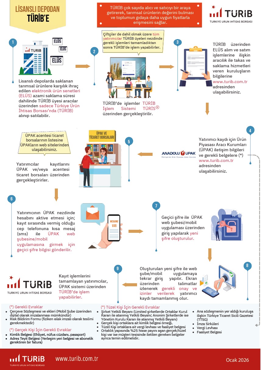 Kayseri Ticaret Borsamız, 2025 yılından itibaren Anadolu Ürün Piyasası Aracı Kurumu (ÜPAK) Acentesi olarak lisanslı depolarda yer alan ürünlerin alım-satımını yapan tüm yatırımcılara hizmet vermektedir. Anadolu ÜPAK’a kayıt olmak için gerekli evraklara aşağıdan ulaşabilirsiniz.